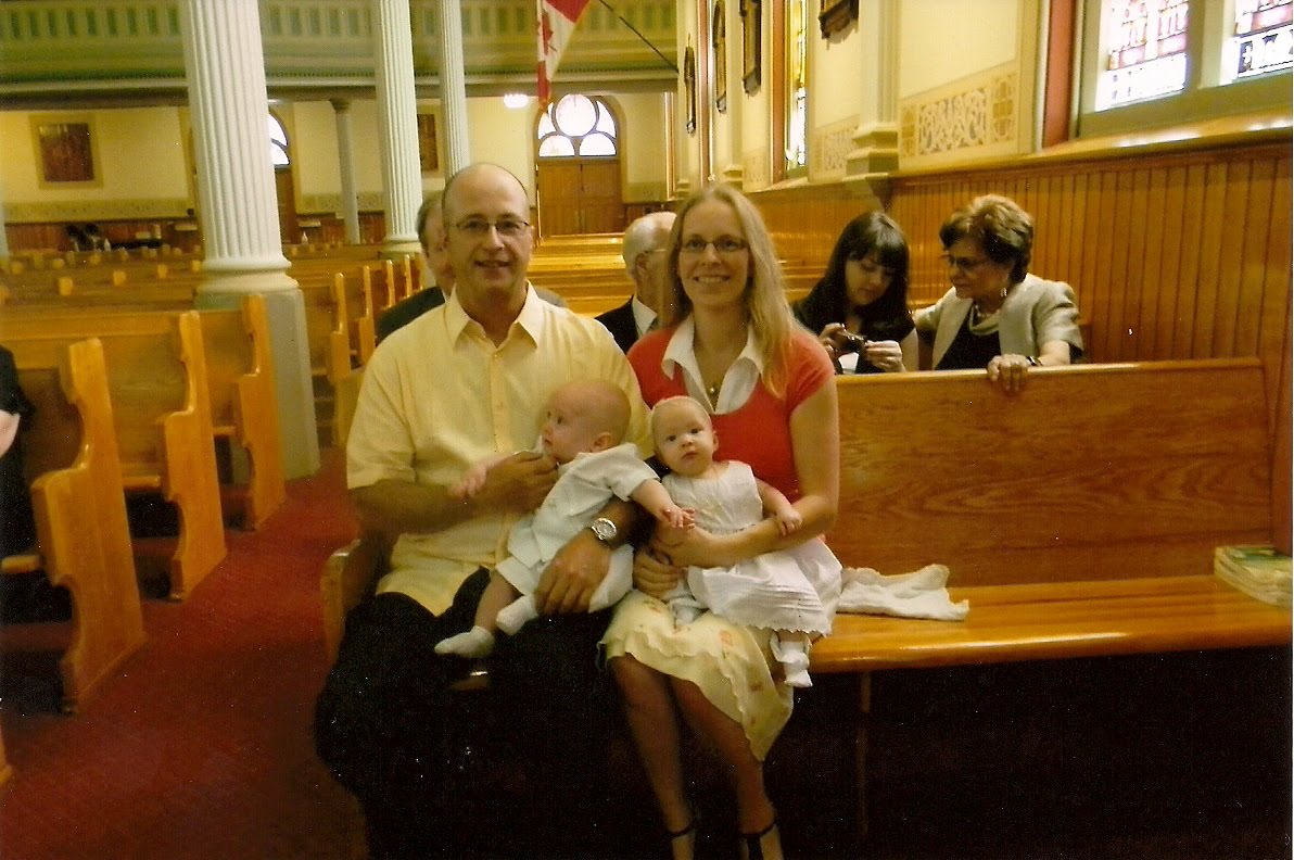 We were blessed to have the ceremony officiated by Poppa’s first cousin; Father Allan Donald Hood. It was held in St. Michael’s Church in Cobourg, Ontario (his church, one hour east of Toronto). Nanna provided the two beautiful flower displays at the church, Tia Ilka videotaped the event and Father Hood wore a special robe (given to him by his grand father, Andrew Hood).